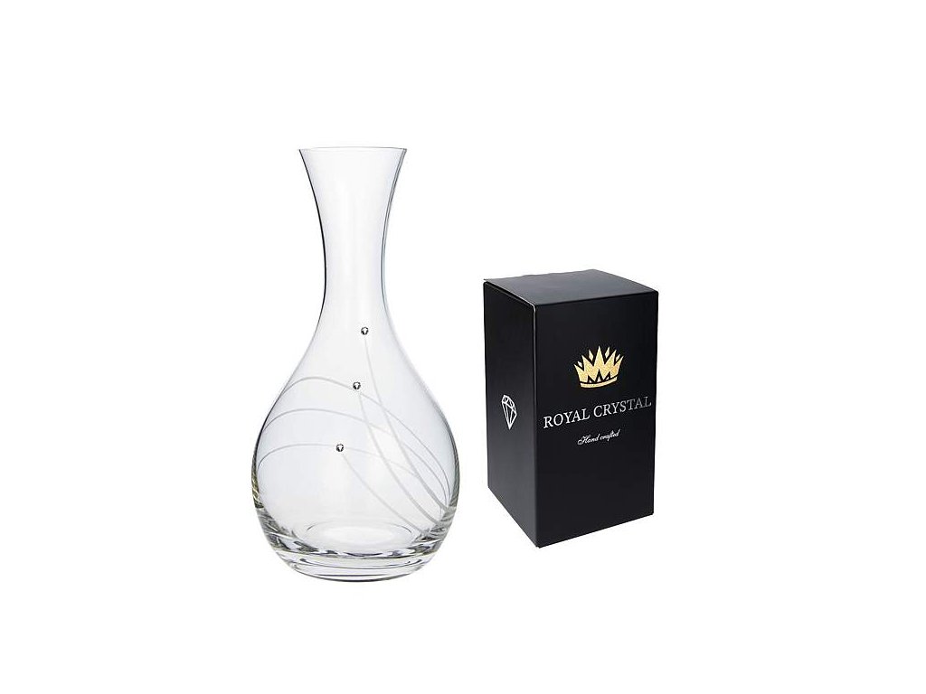 Karafa na víno Swarovski vás nadchne moderným brúseným sklom ozdobeným kryštálmi . Precízne dekoračné práce v priezračnom krištáľovom skle z vázy robia luxusný dar vhodný na mimoriadne príležitosti. Váza je vďaka rozšírenému dnu stabilná. Karafu môžete použiť na podávanie bieleho i červeného vína.