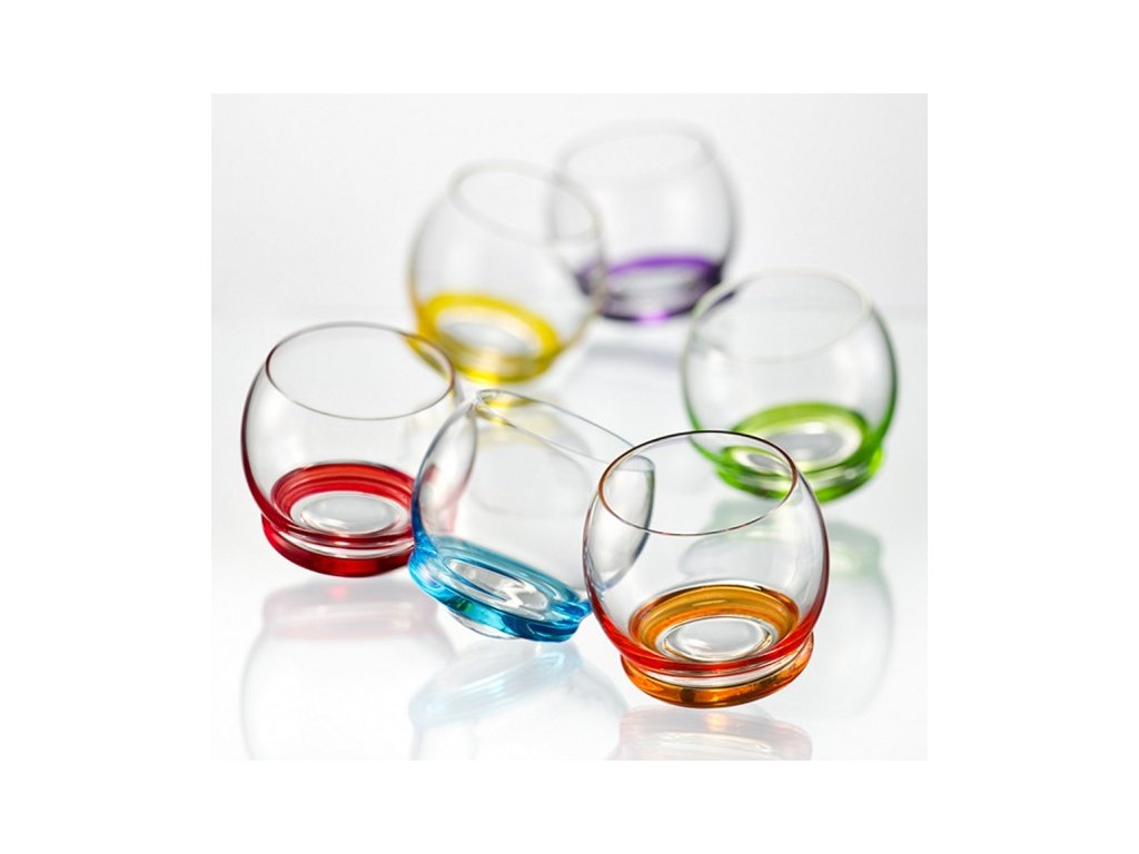 Originálna sada šiestich bláznivých hojdacích pohárov Crazy s objemom 390 ml prináša štýl, hravosť aj praktickosť do každodenného stolovania. Poháre z kvalitného bezolovnatého fúkaného krištáľového skla Sparkl zaujmú nielen elegantným čírym vzhľadom s výbornými optickými vlastnosťami, ale aj špeciálne zaobleným dnom , vďaka ktorému sa jemne pohupujú bez toho, aby sa prevrhli . Každému poháru dodáva jedinečnosť farebné dno , vďaka ktorému si každý ľahko spozná tú svoju – či už podávate vodu, džús, nealko nápoje alebo napríklad whisky či koňak. Výrobok pochádza z tradičných českých sklární Crystalex v Novom Bore a vďaka starostlivému spracovaniu sú poháre odolné proti rozbitiu . Na zachovanie farieb odporúčame ručné umývanie.