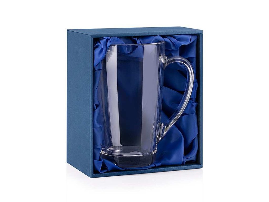 Luxusná veková modrá darčeková krabička na hrnček Glasmark ALEX 400 ml s modrým saténom.