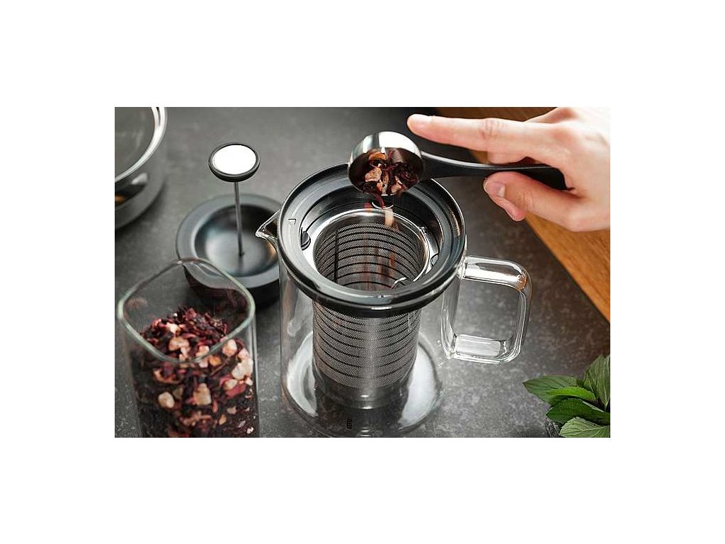 Najväčšou prednosťou je inovatívny nerezový filter s integrovaným piestom , ktorý umožňuje zastaviť proces lúhovania priamo vo vnútri kanvice . Stačí stlačiť piest a chuť nápoja zostane presne taká, ako ju máte radi - bez rizika prelúhovania. V prípade potreby je možné filter jednoducho vybrať a kanvicu používať aj bez neho.