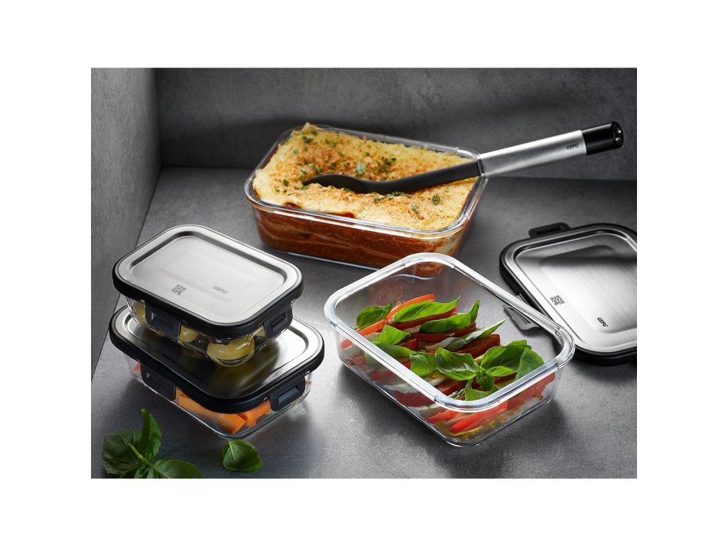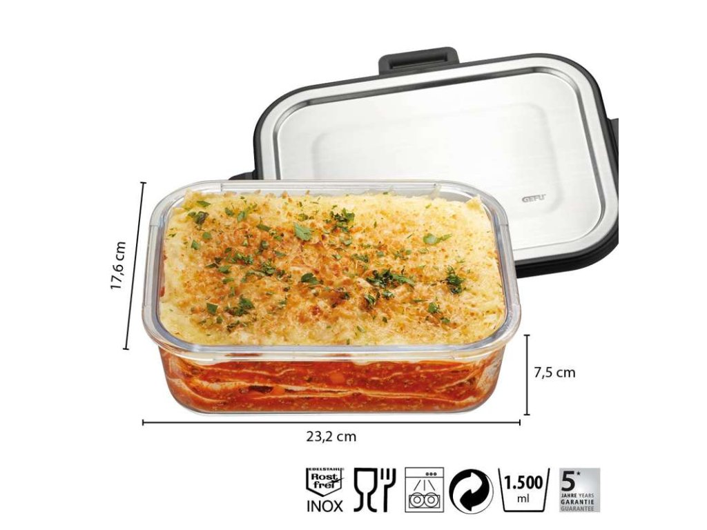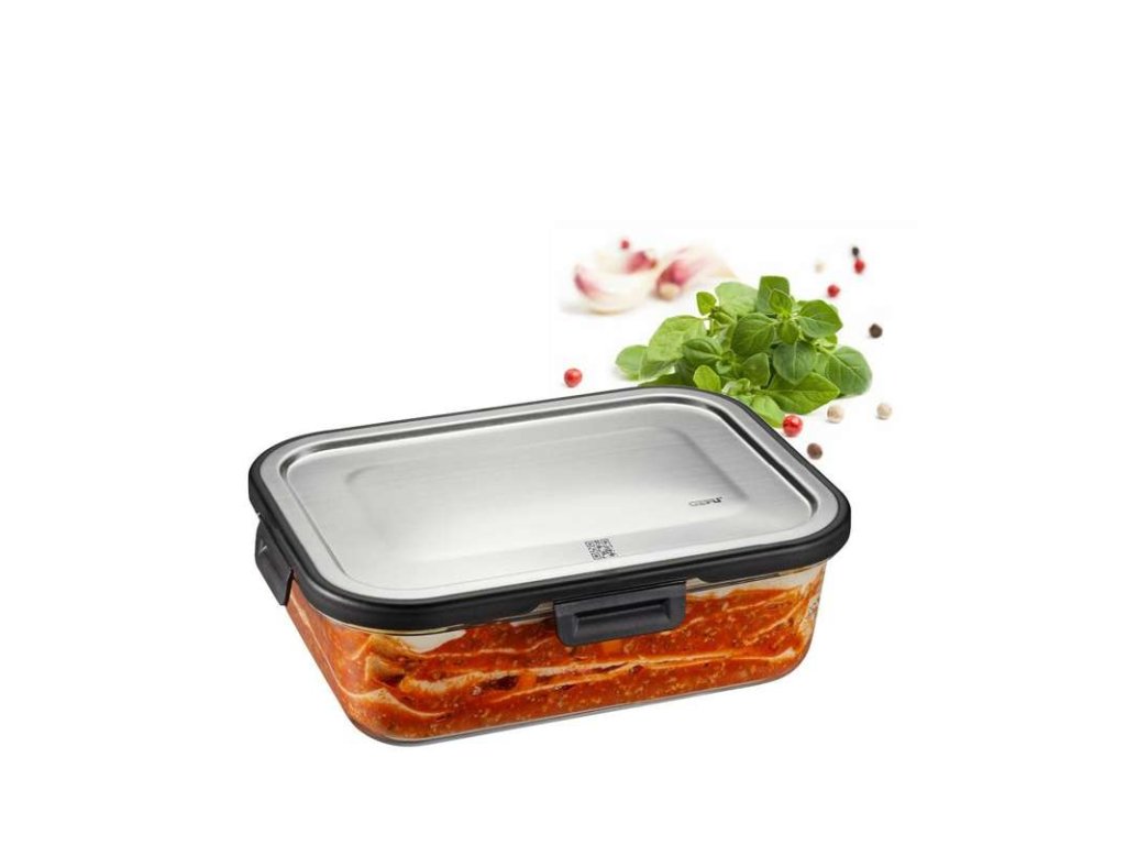 Sklenená krabička na potraviny Milo s objemom 1500 ml je praktickým a elegantným riešením na uchovávanie i prenášanie pokrmov doma aj na cestách. Je vyrobená z odolného borokremičitého skla , ktoré znáša vysoké teploty a nepreberá chute ani pachy. Dóza je opatrená klipovým vekom z kvalitnej nerezovej ocele s tesnením z potravinárskeho silikónu, ktoré zaistí vzduchotesné uzavretie a uchová čerstvosť potravín po dlhšiu dobu. Skvele sa hodí na uloženie jedál do chladničky či mrazničky , a bez veka ju možno bezpečne použiť aj v mikrovlnnej alebo bežnej rúre. Spojenie odolnosti, funkčnosti a čistého dizajnu robí z tejto dózy spoľahlivého pomocníka na každodenné použitie.