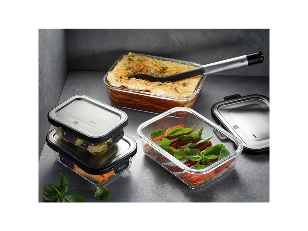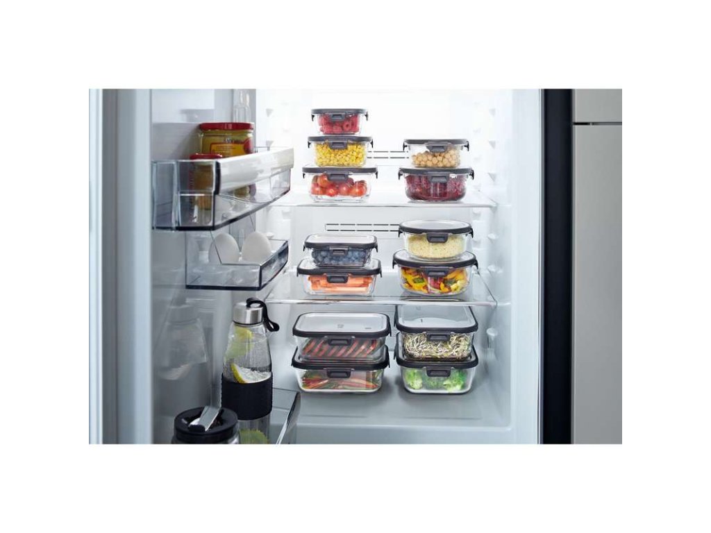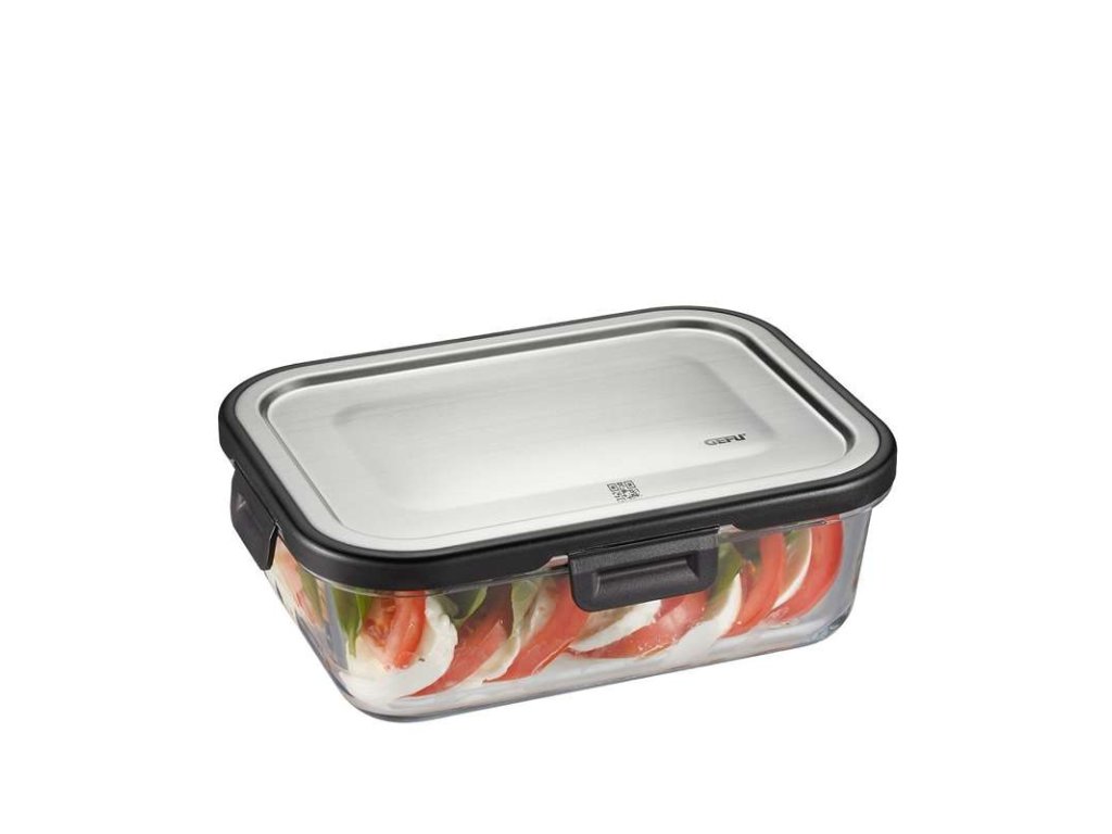 Sklenená krabička na jedlo Milo s objemom 1 liter je skvelou voľbou pre všetkých, ktorí chcú uchovávať alebo prenášať potraviny zdravo, bezpečne as minimom plastov. Pevné veko z kvalitnej nerezovej ocele doplnené tesnením z potravinárskeho silikónu zaisťuje dokonalé hermetické uzavretie bez rizika úniku tekutín. Telo dózy je vyrobené z hladkého lisovaného varného skla bez ostrých hrán či švov, ktoré je odolné a neabsorbuje nežiaduce chute ani pachy z potravín. Precízne prevedenie Made in Germany je zárukou dlhej životnosti a spoľahlivého používania. Unikátny prvok predstavuje laserovo gravírovaný QR kód na veku , ktorý umožňuje spravovať zásoby pomocou mobilnej aplikácie – praktické riešenie pre modernú domácnosť. Milo je dizajnovo čistá, funkčná a pripravená byť vašou každodennou pomocníčkou pri skladovaní potravín.