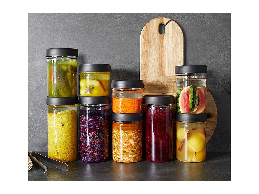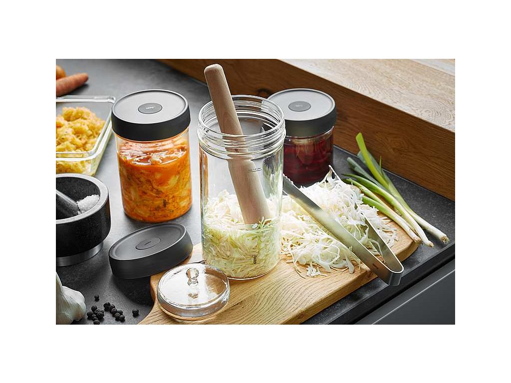 Fermentačný pohár Nativo s objemom 1,5 litra je ideálna pomôcka na prípravu domácich fermentovaných potravín. Je vyrobená z pevného a trvanlivého varného skla , ktoré je certifikované pre styk s potravinami, takže môžete byť istí, že vaše jedlo bude bezpečné a zdravé . Súčasťou súpravy sú masívne sklenené závažie a viečko s ventilom , ktorý umožňuje uvoľňovanie plynov vznikajúcich pri fermentácii a zároveň zabraňuje prístupu vzduchu, čo uľahčuje skladovanie skvasenej zeleniny v chladničke. Vďaka svojmu ventilačnému systému pohára Nativo umožňuje prirodzenú fermentáciu, pri ktorej sa zachovávajú prirodzené chute a výživné látky potravín . Pohár je navrhnutý a vyrobený nemeckou značkou Gefu , ktorá je špecializovaná na dizajnové vychytávky do kuchyne, takže si môžete byť istí kvalitou a funkcionalitou produktu . . Pohár je balený vo farebnej kartónovej krabičke, takže je ideálny aj ako darček pre vašich blízkych, ktorí majú radi zdravé a chutné jedlo.