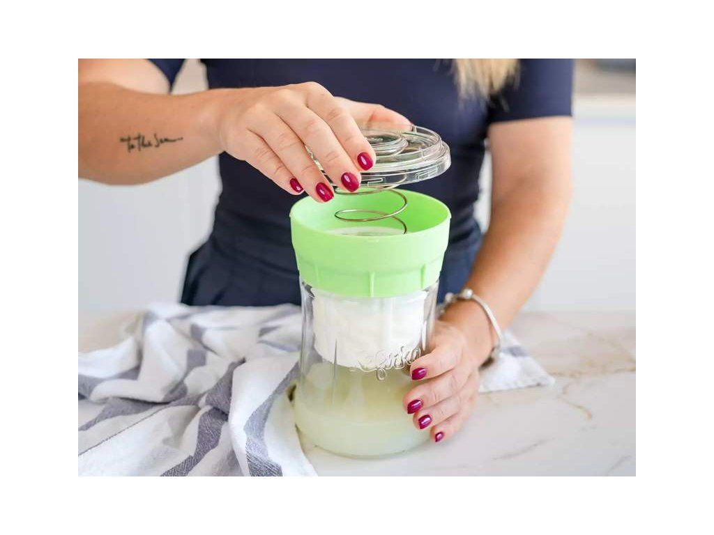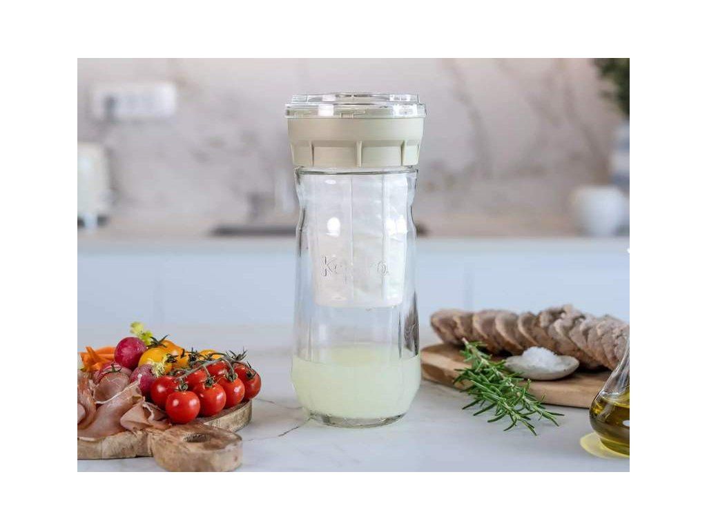 - sklenená nádoba umožňuje hygienickú a prehľadnú prípravu syra