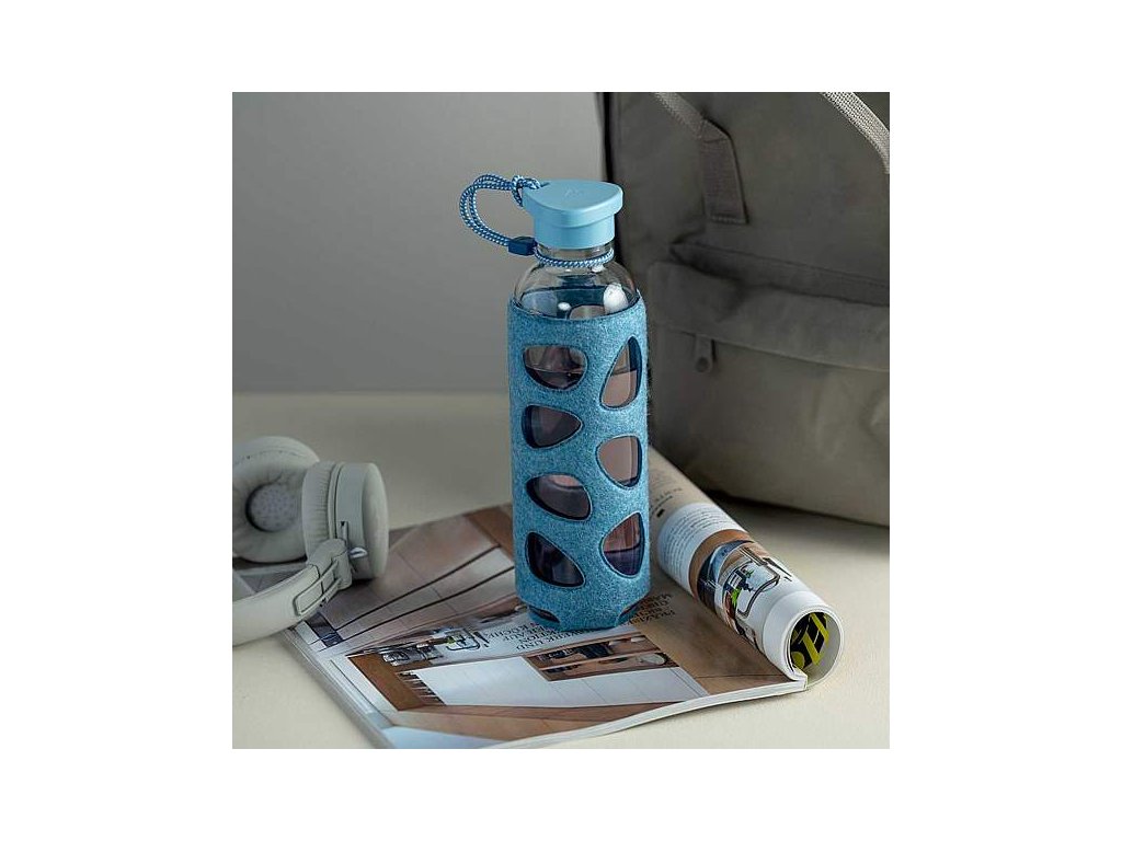 - svetlo modrý filcový návlek ochraňujúci fľašu proti rozbitiu