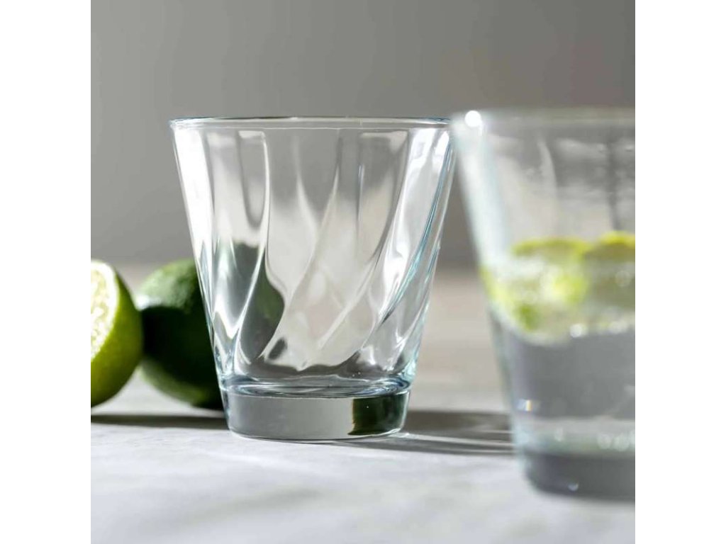 Elegantné poháre z kolekcie Twist vynikajú originálnym dizajnom a praktickosťou na každodenné použitie. Set 6 pohárov s objemom 215 ml je ideálnou voľbou na podávanie vody, džúsu aj ďalších nealkoholických nápojov. Vďaka kónickému tvaru a silnému dnu ponúka poháre mimoriadnu stabilitu , takže dobre sedí v ruke aj na stole. Jemná lisovaná dekorácia , ktorá zdobí ich povrch, vytvára atraktívny optický efekt zakrútenia, ktorý podčiarkuje celkovo moderný vzhľad . Twist zaujmú na prvý pohľad a pritom zostávajú praktické a príjemné na každodenné používanie.