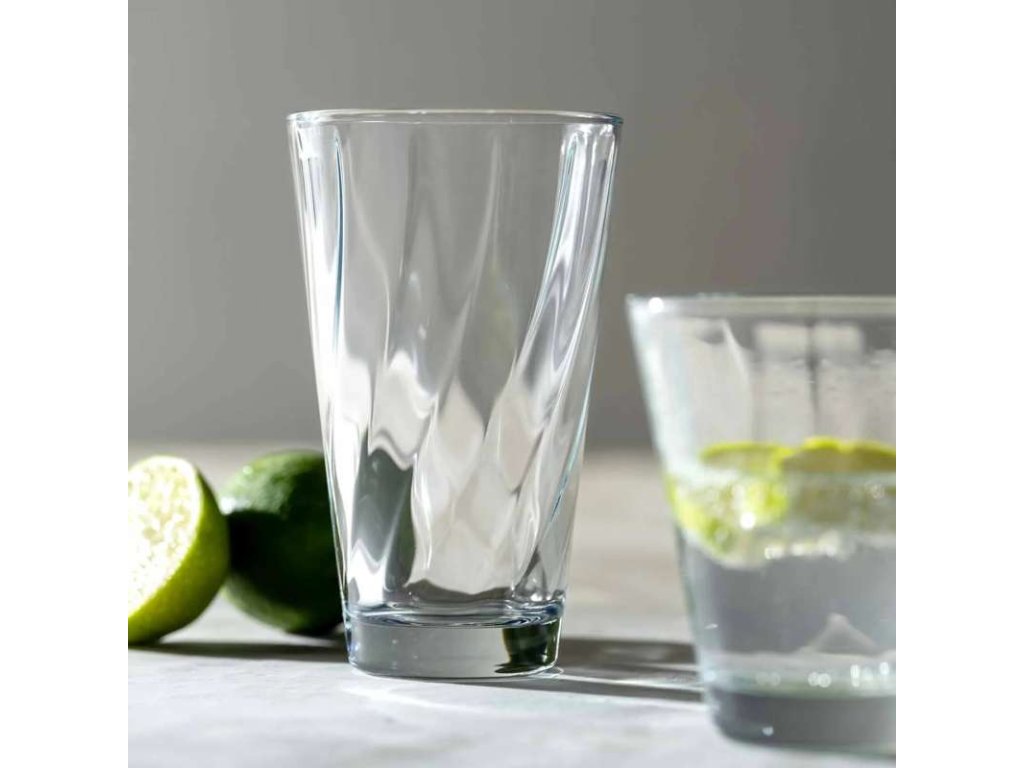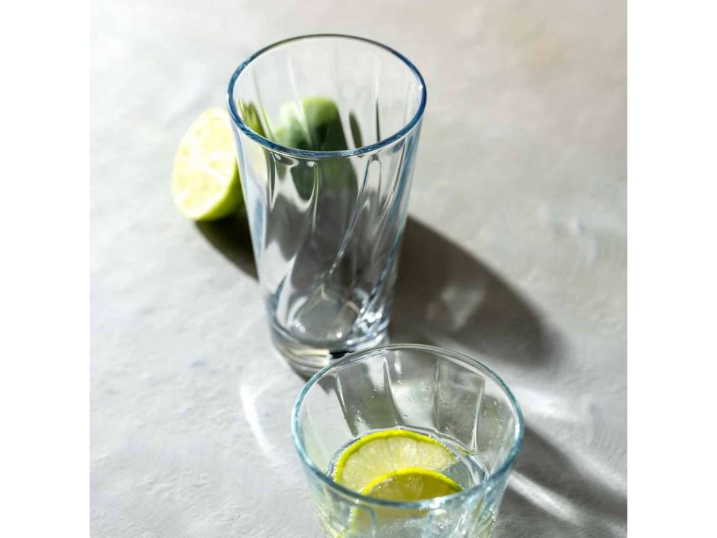 Poháre z kolekcie Twist prinášajú do každodenného stolovania sviežu eleganciu a originálny vzhľad. Vďaka objemu 300 ml sú ideálne na servírovanie vody, ovocných džúsov, limonád i ďalších nealkoholických nápojov. Ich kónický tvar so silným dnom zaisťuje výbornú stabilitu pri každodennom používaní, či už doma alebo pri slávnostnejšom servise. Zaujmú tiež decentnou lisovanou dekoráciou , ktorá vytvára jemný optický efekt zakrúteného skla . Tento vizuálny detail dodáva pohárom nadčasový charakter a zároveň nepôsobí rušivo. Twist je skvelou voľbou pre tých, ktorí hľadajú spojenie funkčnosti, štýlu a originality v jednom.