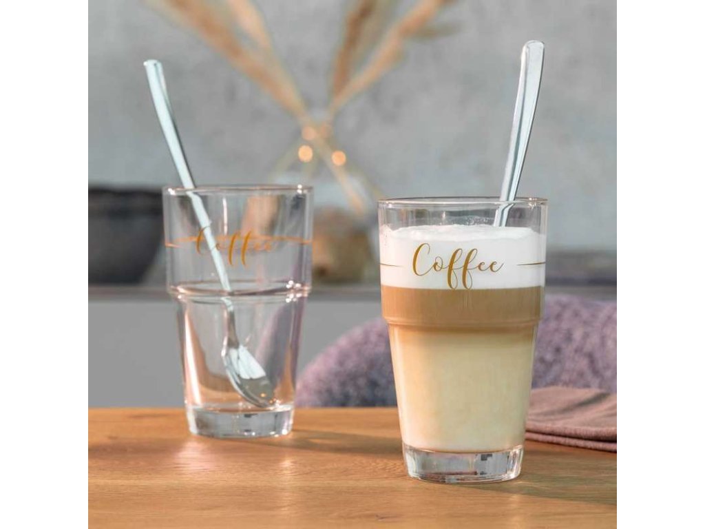 Elegantný set pohárov Solo je perfektnou voľbou pre všetkých milovníkov horúcich aj studených kávových nápojov. Objem 410 ml zaisťuje dostatok priestoru pre latté, frappé alebo ľadovú kávu, zatiaľ čo hrubostenné sklo zaručuje vysokú mechanickú odolnosť a bezpečné uchopenie aj pri vyšších teplotách. Kónický tvar a robustné dno prispievajú k celkovej stabilite pohárov, takže sa nemusíte obávať nechceného prevrhnutia. Praktickým bonusom sú dve dlhé lyžičky z nerezovej ocele , ktoré oceníte pri miešaní a servírovaní. Moderný dizajn v kombinácii s funkčnosťou robí z tohto setu ideálny doplnok pre domácnosť aj ako darček.