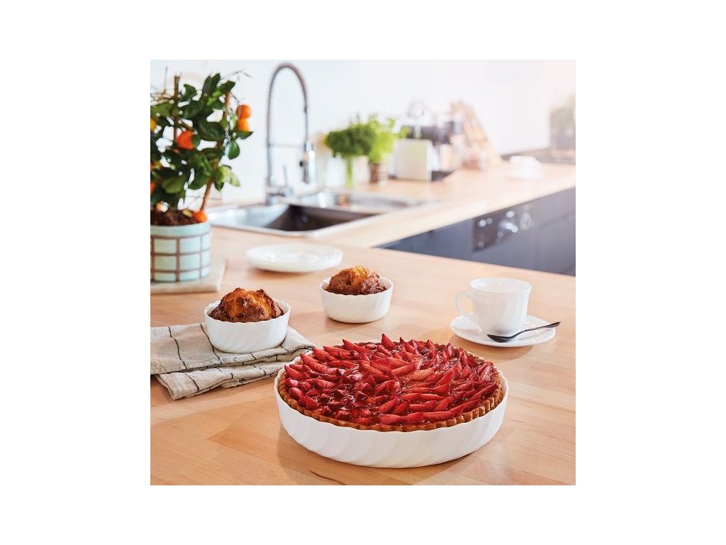 Ľahčené opálové sklo vám umožní servírovať váš obľúbený francúzsky koláč z rúry priamo na stôl. Elegantná biela farba formy zvýrazňuje vzhľad koláča. Ľahké a vrúbkované prevedenie prispievajú k ľahkej manipulácii. Formu na pečenie vyrába francúzskej sklárne Luminarc, ktorých opálové sklo odoláva bežným nárazom i vysokým teplotám do 250 ° C. Môžete ju bez obáv umývať v automatickej umývačke riadu.