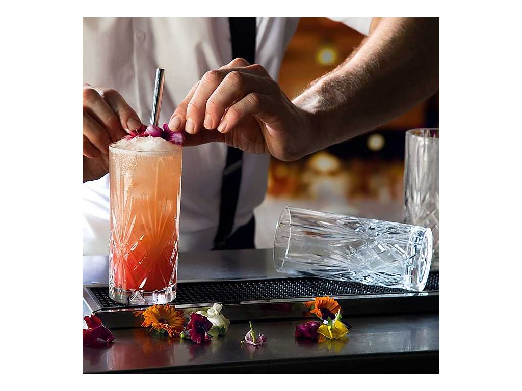 Poháre Melodia 360 ml zaujmú na prvý pohľad svojim elegantným reliéfnym dekorom , ktorý nielen krásne odráža svetlo, ale zároveň zaisťuje pohodlnejší a bezpečnejší úchop. Tento set 6 kusov je ideálny pre podávanie long drinkov, limonád, nealkoholických nápojov aj miešaných koktailov s ľadom .