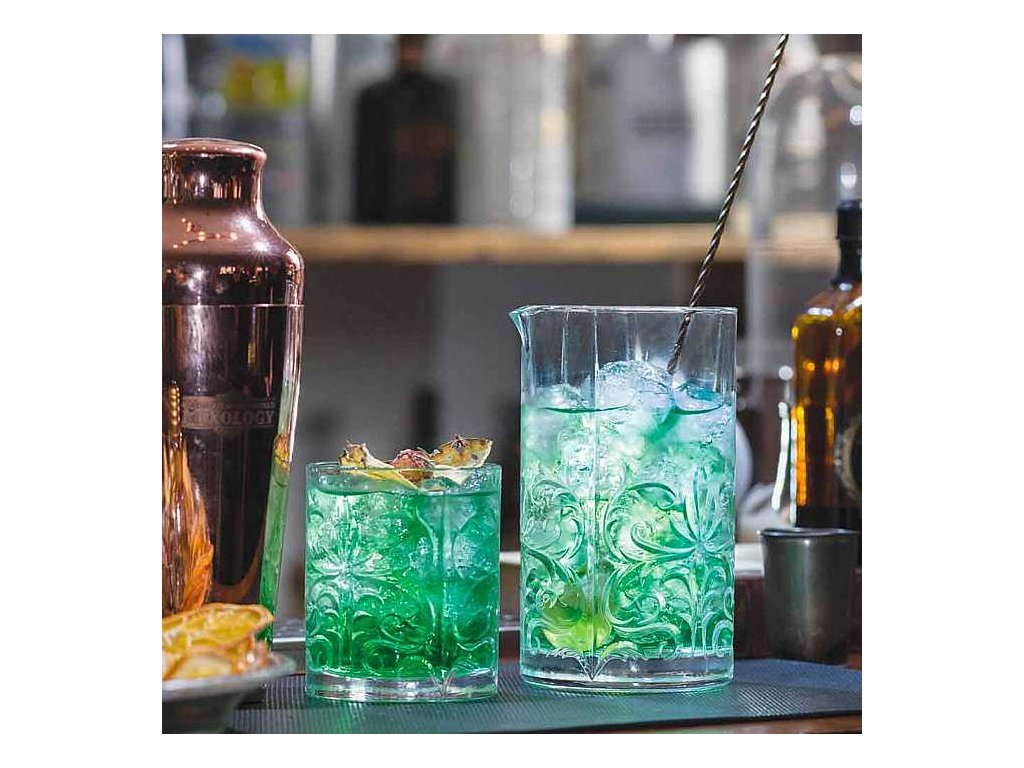 Je miešanie koktailov vašim denným chlebom a chcete si zaobstarať nového pomocníka? Alebo zatiaľ patríte do kategórie nadšeného amatéra? V oboch prípadoch vám príde vhod sklenený miešací pohár, s ktorým vykúzlite svoj obľúbený drink jedna dva. Miešací pohár Tattoo s objemom 650 ml využijete predovšetkým na prípravu klasických koktailov. Goticky ladená dekorácia stien evokujúca popínavú rastlinu vás okamžite dostane. A to aj z praktického hľadiska, pretože vám poháre pri nalievaní a miešaní jednotlivých zložiek nebude kĺzať z ruky . Ďalšou užitočnou vychytávkou je vylievací zobáčik , s ktorého pomocou dopravíte hotový nápoj priamo do servírovacieho pohára. Po vymiešaní posledného kokteilu môžete pohár umyť v umývačke riadu .