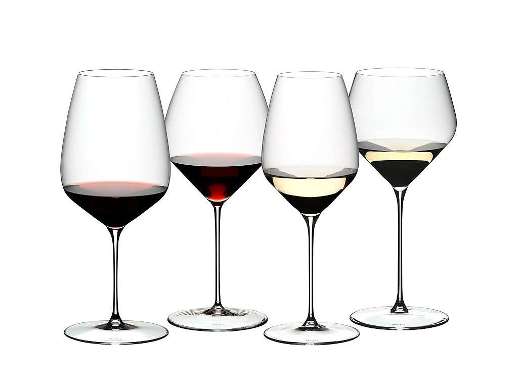 Objavte rozdiely vo vnímaní vína s degustačnou sadou Riedel Veloce Tasting Set, ktorá obsahuje štyri typy pohárov - Cabernet, Pinot Noir, Riesling a Chardonnay.