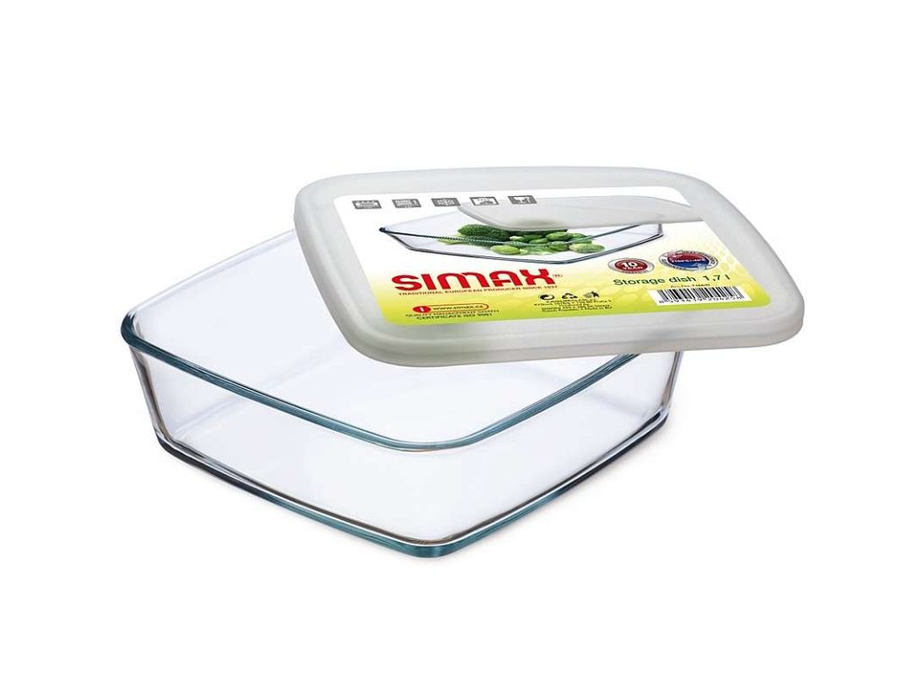 - sklenený hranatý zásobník na potraviny Simax 1,7 l