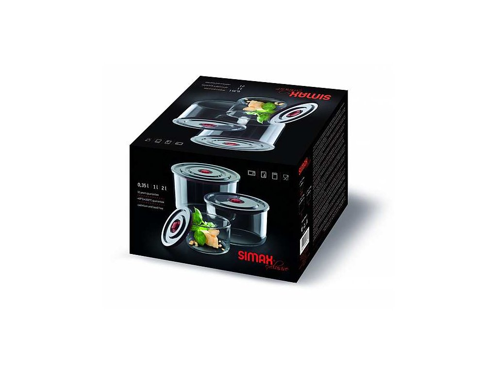 Každá nádoba je vyrobená z odolnej skloviny Simax bez prímesí olova a kadmia , certifikované pre bezpečný styk s potravinami . Tesniace plastové viečka s ventilom zaistia vodeodolné a vzduchotesné uzavretie , ktoré je zároveň jednoduché a praktické: naplňte dózu, priklopte veko s otvoreným ventilom a potom ventil uzavrite .