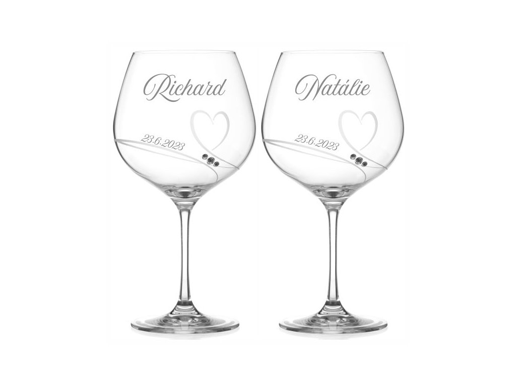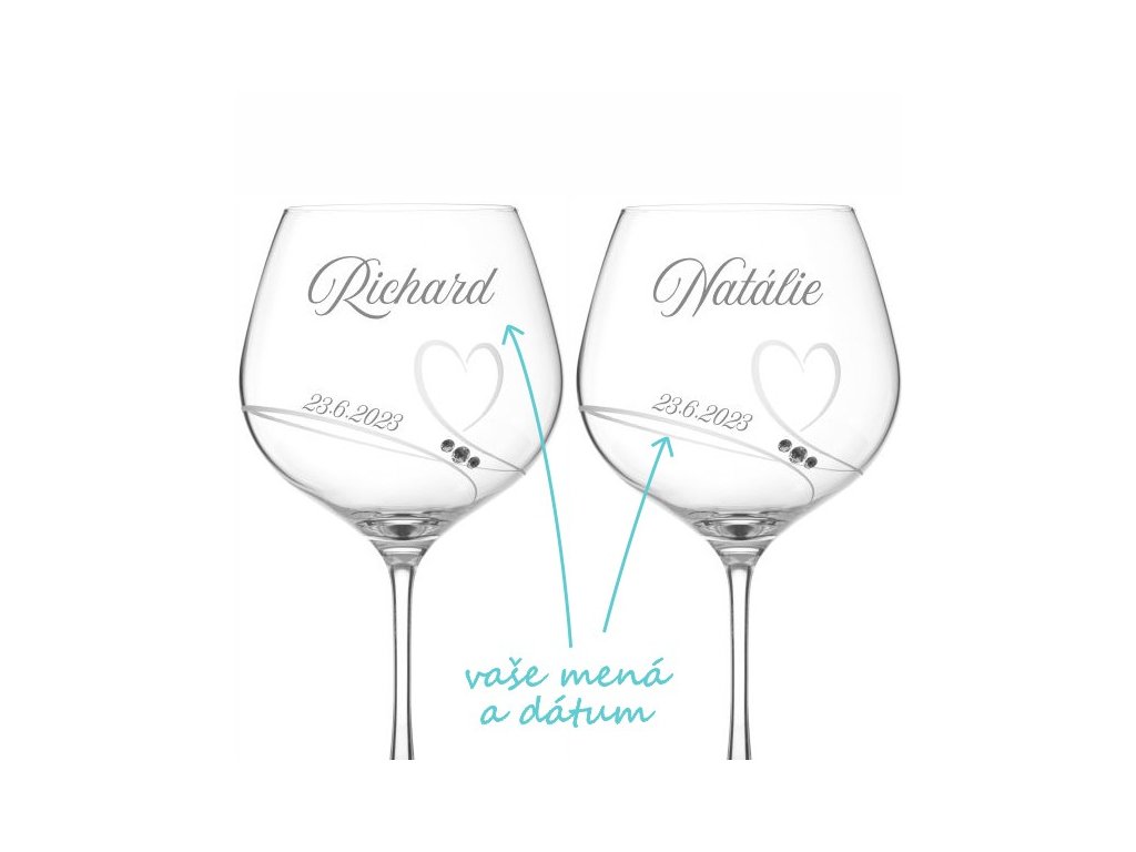 Poháre sú zdobené ručne brúseným srdcom a kryštálmi Swarovski Elements . Pieskujeme na dizajnové poháre Diamante Poháre Romance 640 ml . Prednosťou pohárov je priezračné bezolovnaté krištáľové sklo, vysoká odolnosť proti mechanickému poškodeniu a jemne zabrúsený ústny okraj. Poháre neodporúčame umývať v umývačke riadu. Poháre sú dodávané v luxusnej darčekovej krabičke