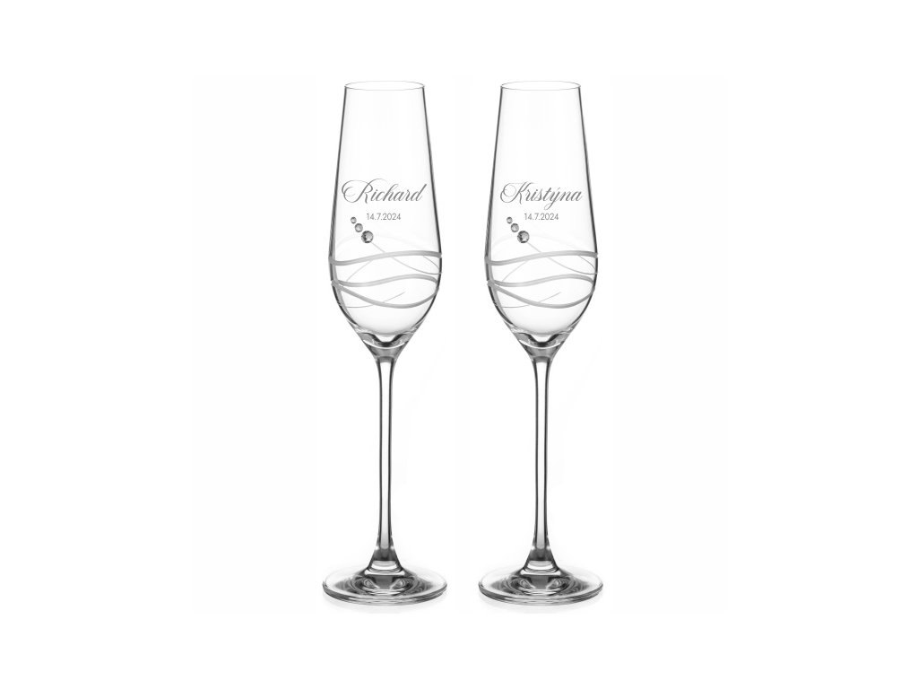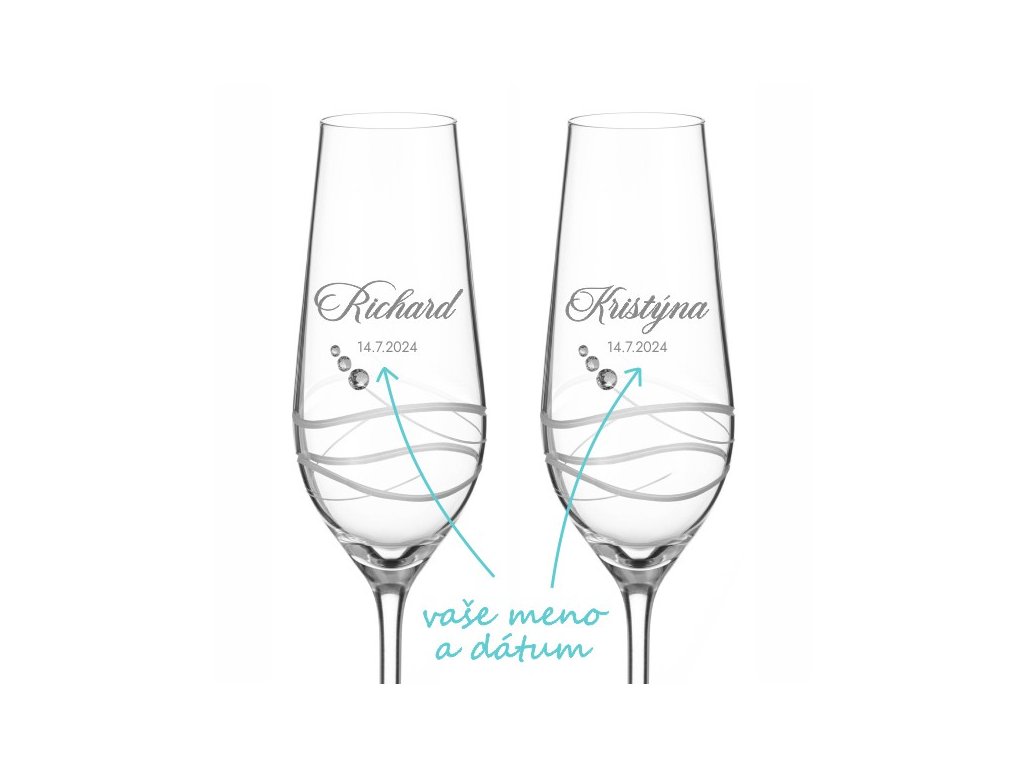 Svadobné poháre na sekt Venezia s menom, 2 ks