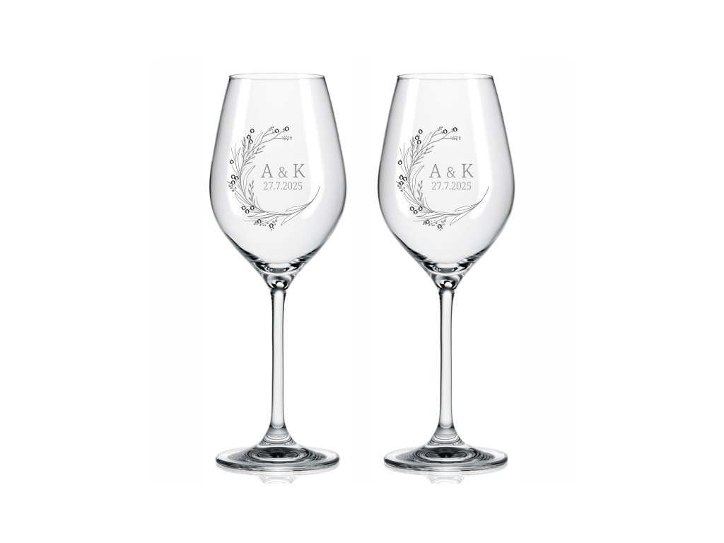 Poháre sú ručne dekorované kryštálmi od českého výrobcu Preciosa . Exkluzívne kryštály sú známe svojou brilanciou, iskrou, trblietkou a vysokou odolnosťou . Pieskujeme na elegantné poháre Celebration 360 ml slovenských sklární Rona. Prednosťou pohára je priezračné bezolovnaté krištáľové sklo, vysoká odolnosť proti mechanickému poškodeniu a jemne zabrúsený ústny okraj. Pri výrobe pohárov bola použitá najmodernejšia technológia ťahanej nôžky, ktorá tak spája kalich s nôžkou a zaisťuje plynulý a hladký prechod bez spojov.