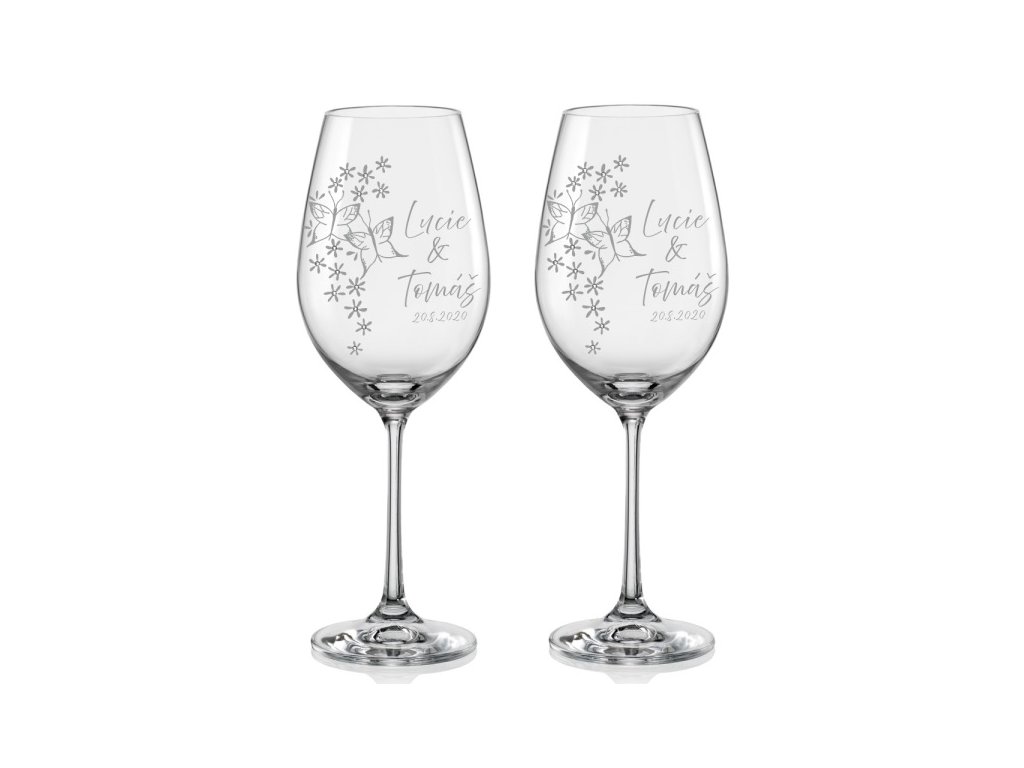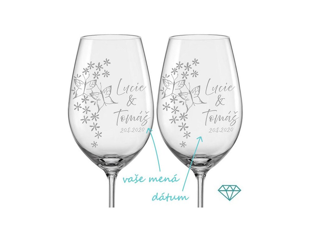 Svadobné poháre na víno Motýliky s kryštálmi, 2 ks